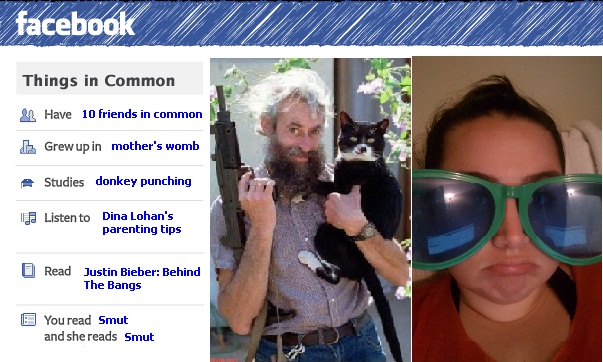 I’m not sure there is a bigger recipe for disaster than matching peeps based on their FB profiles. Other than that, I’m sure dude with Gun and Cat is pretty devestated you’re not single Jen…. 🙂