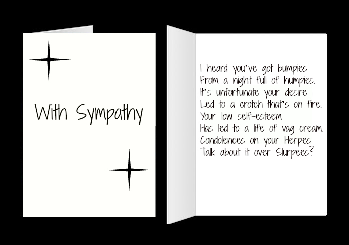 I’m pretty sure you’re the first person ever to rhyme herpes with slurpees. Not only is it brilliant, but it’s a money-maker. I’m thinking 7-11 should introduce the “Valtrex Slurpee.”