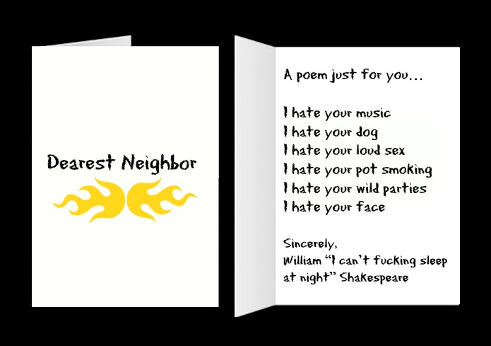 Lmao, I want these cards… Neighbour one would be fun to buy a few hundred and drop off in random mail boxes.