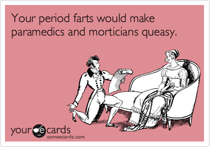 […] (and aliens on a probing mission) go. I discussed the unpleasant nature of my menstrual cycle in this post, and who can forget about getting my butt hoovered by a fart-stealing colon […]