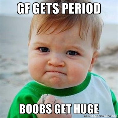 This is no joke. There are times when my breasts get so swollen I’m convinced a stiff wind will cause them to burst like water balloons hitting the ground. I wear “menstrual shirts” which are so loose and billowy that it looks as though I’m channeling my inner pirate. Some of my male friends joke that as a woman I shouldn’t complain about bigger breasts. Okay, well let’s inflate your scrotum until the skin becomes transparent, and it’s rubbing against your zipper all day long. Feels good, doesn’t it?