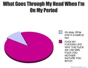 Imagine that in one hour you had the best sex of your life, found out your dog died, and someone keyed your car– that’s what being on your period is like. One minute you’re happily driving to work, and the next you’re crying while listening to “Landslide” by Fleetwood Mac. Point being, there are homicidal maniacs who are more mentally stable than a woman who is menstruating. You should just be glad we’re not cutting off your hands while you sleep, and using your fingers to pick our noses.