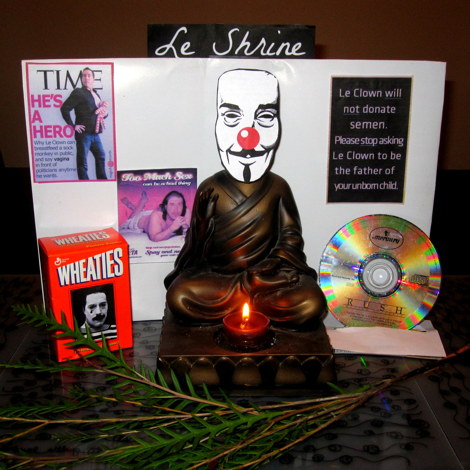 As you can see, I ran out of steam towards the end. Come on Tonic, get your head in the game. Then it hit me! I wasn’t appealing to his senses. What better way to honor a man with an ego the size of Texas (have they seceded already?) than by building him a shrine?